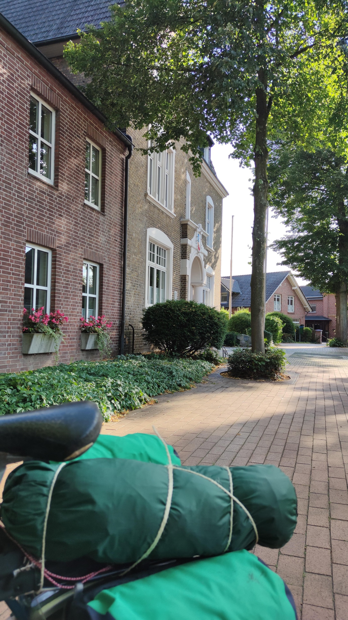 Het eerste doel was eerst de stad Wesel, omdat het zo’n geweldige naam heeft en het begin is van de D7 fietsroute. Ik kwam daar rond half 4 aan, waarna ik de stad nog even heb verkend. Het is niet echt een mooie stad. Eigenlijk zijn er maar twee mooie gebouwen. Ik ben vervolgens maar doorgefietst en in Hünxe mijn voorbereide nasi als avondeten gegeten. Hünxe was een slaperig dorpje en zag er wel knus uit. Ik kreeg nog advies over een camping.