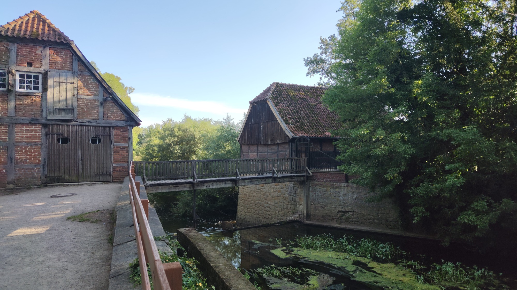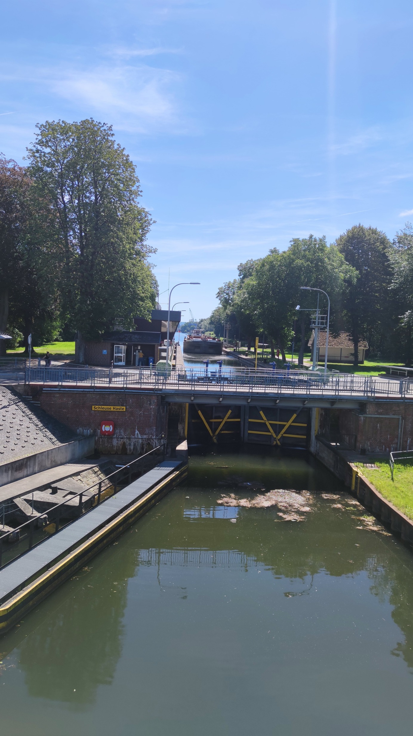 Heel veel zin om weer een middag in een stad rond te hangen had ik niet, dus ik ben snel door Osnabrück heen gefietst. Ik was van plan iets strikter de D7 fietsroute te volgen die naar Bremen gaat. Het boek onderweg dat deze weg niet heel efficiënt was met veel nodeloze, maar wel interessante omwegen. Ik had door de hitte niet al te veel zin om met moeite in mijn route te stoppen dan bordjes volgen, dus ik bleef op de D7.