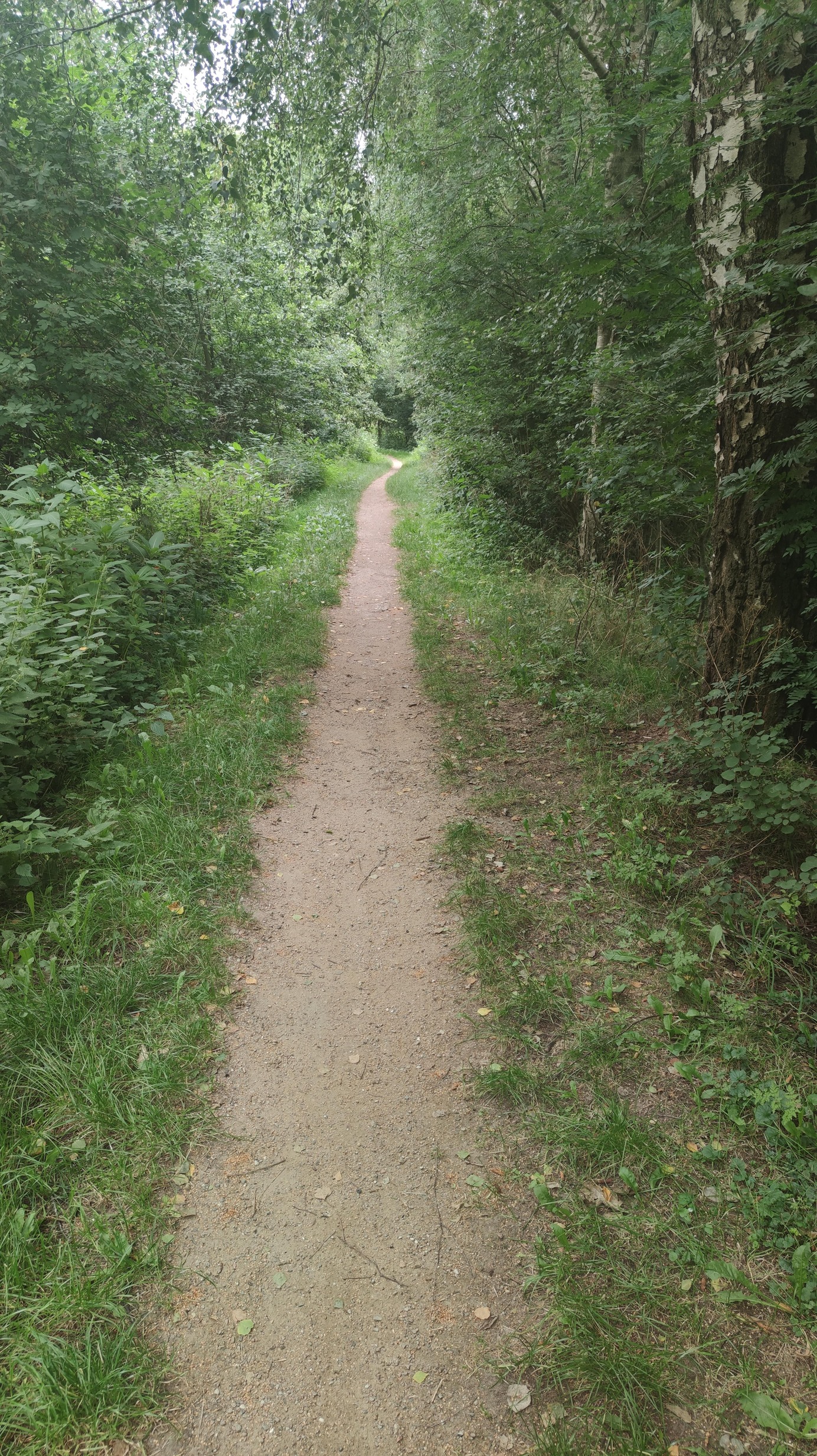 Er staat een bordje dat ik een heel klein zandweggetje op moet. Ik vraag me dan af of dit echt de grote weg naar Bremen is. Ik neem het paadje alsnog een het blijkt dat dit inderdaad de goede weg is. Het gaat door meerdere bossen heen. De paden zijn gravel, gras, modder of los zand. De modder kun je wel ontwijken en het gras gaat ook wel. De gravel paden hebben vaak grote stenen wat het rijden erg vervelend maakt vooral omdat ik constant het idee heb dat mijn band zal klappen. Af en toe heeft een pad een kuil met zand. Daar kom je niet makkelijk door. De fiets komt volledig tot stilstand. Nu kwam je af en toe weer op een mooie weg, maar je wordt snel weer terug het bos in gestuurd. Uiteindelijk toch maar mijn eigen route gekozen die directer naar Bremen ging.