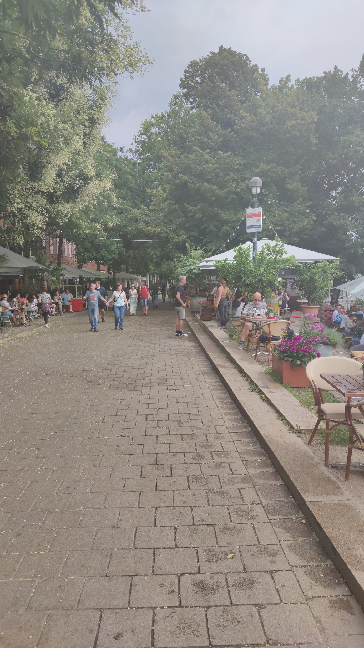 Naast mij stond Richa die ook aan een flinke tocht bezig was. Zij liep al sinds mei vanuit Denemarken, alle uithoeken van het land verkennende, en was van plan ergens naar zuid Duitsland twee lopen. Ze heeft dit al vaker gedaan in Azië en Afrika voor ongeveer 10 jaar. Soms blijft ze ook een tijdje op dezelfde plek voor waar extra werk voor geld of levensonderhoud. Het was erg gezellig en ik kreeg nog wat tips voor in Denemarken.