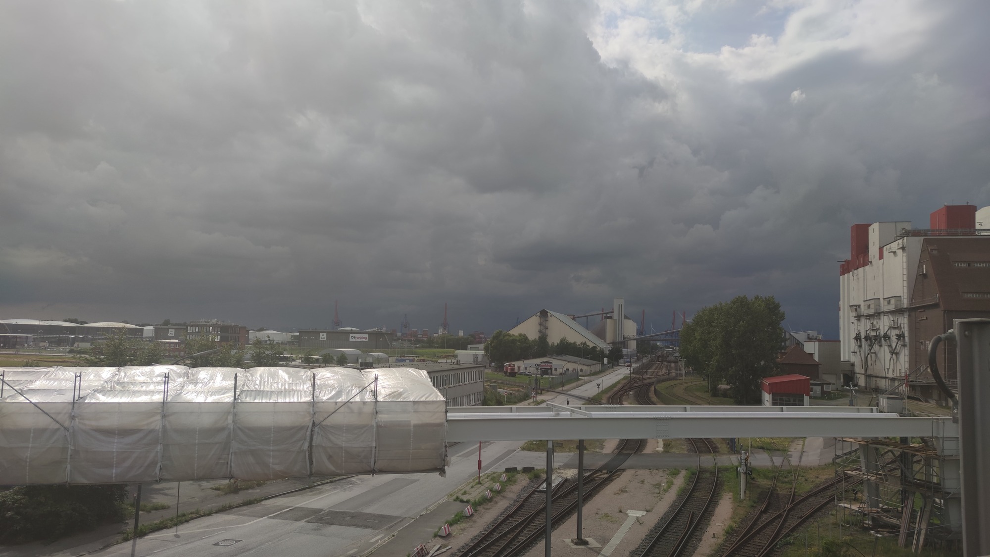 Ik was al best snel het gebied van de stad Hamburg in, maar het was nog een heel eind tot de binnenstad. Hamburg heeft erg veel industrie tussen waar ik vandaan kwam en de binnenstad. Ik moest veel stoplichten door die toegangswegen naar snelwegen kruisten. Toen ik de snelwegen brei voorbij was moest ik nog wat bruggen over. Ik volgende netjes de aanwijzingen naar een brug die gerenoveerd werd een dus afgesloten. Weer omrijden dus. Ondertussen wordt ik al heel moe van het constant moeten optrekken en remmen voor de vele stoplichten en de gaten in de weg. Nog een spoor over zonder belichte overgang. Goed opletten, heuveltje op, manoeuvreren tussen te kleine poortjes voor de tassen op mijn fiets en ik kom op een onverharde weg omhoog. Vergeten terug te schakelen. Ik probeer alsnog terug te schakelen en de ketting vliegt weer af. Gelukkig is dat met een derrieur makkelijk te fixen, maar ik had het even gehad met deze weggetjes.